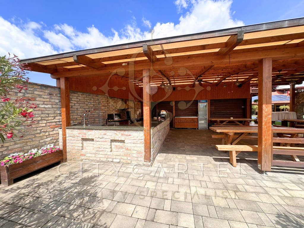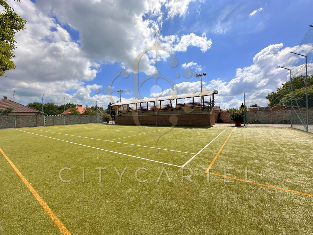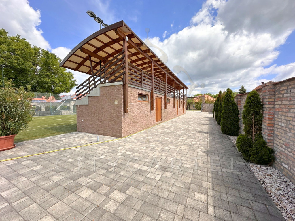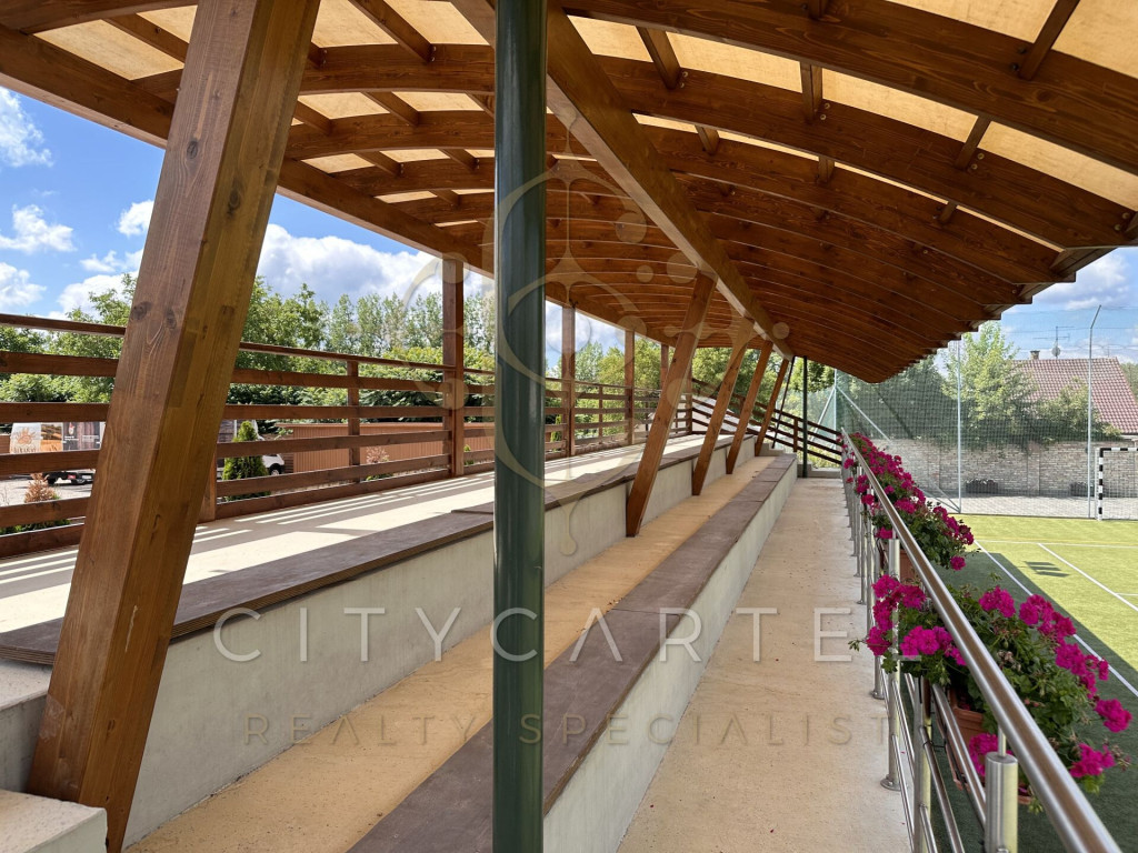 A 100 nm-es medence és a jacuzzi a grillterasszal kiegészítve kiválóan alkalmas szabadtéri rendezvényekhez -a 68 nm-es lelátóval ellátott sportpálya pedig ideális helyszín baráti mérkőzésekhez vagy akár helyi sporteseményekhez. A lelátónál tárolók, mellékhelyiségek kerültek kialakításra.