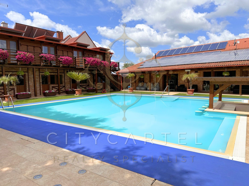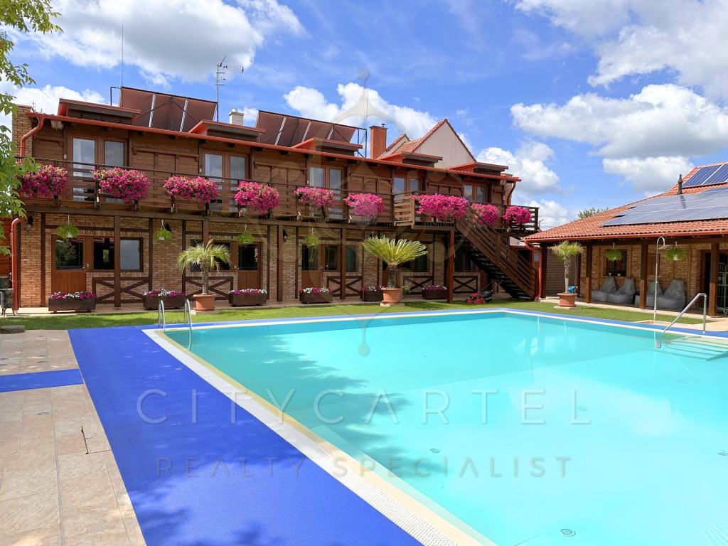 - 4175 nm-es telken 755 nm-es különleges, Bali hangulatú épületkomplexum wellnessel és medencével rendelkező 9 szobás panzióval, konferenciateremmel, étteremmel, bárral, kerti grillezővel, sportpályával, önálló parkoló udvarral -