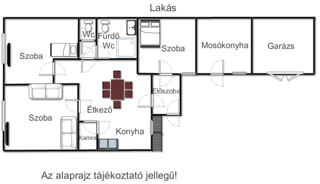 - a lakásként használt épület a következő részekből áll: amerikai konyhás nappali, 3 szoba,