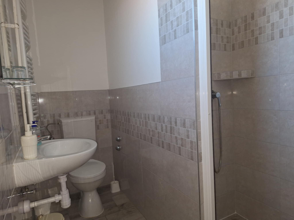 tusolós fürdőszoba wc-vel, külön wc, előszoba, spájz,