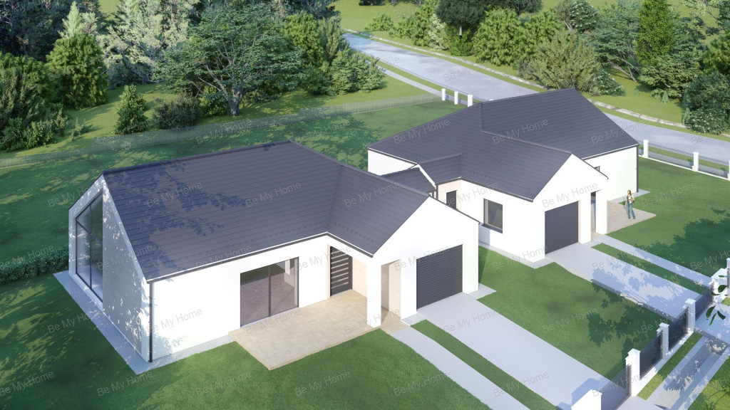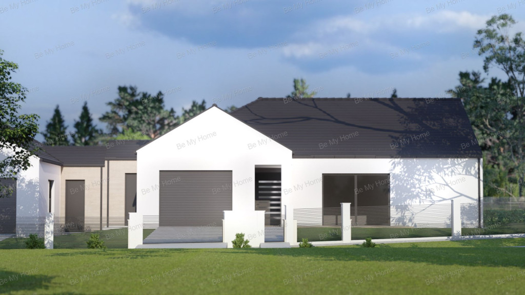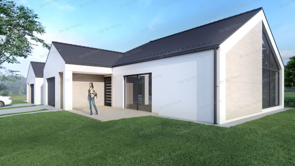 A nettó 144 m²-es ház része egy 23,5 m²-es garázs, valamint egy 8 m²-es terasz. A lakótérben kertkapcsolatos, 40 m²-es nappali–konyha–étkező, három hálószoba, két fürdőszoba, vendég WC és háztartási helyiség kap helyet.