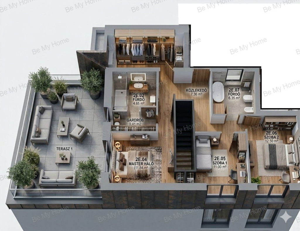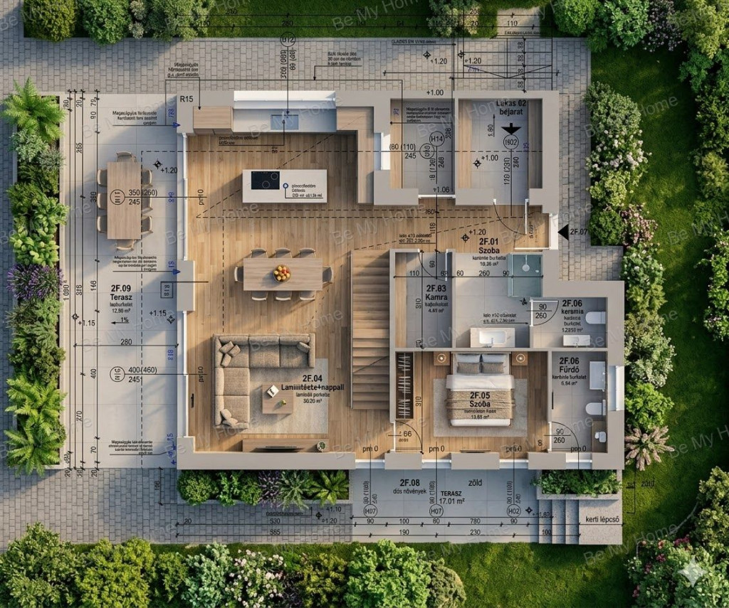 2. lakás nettó lakótér: 160.72m2, + 80m2 terasz + kert: 339 m2