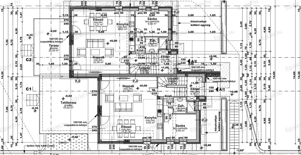 A hőszivattyú télen a padlón és a mennyezeten fűt, míg a nyári hónapokban a mennyezeten hűt, így egész évben biztosított a kellemes hőmérséklet. Az ingatlan külső szigetelése Dryvit rendszerrel, valamint prémium három rétegű nyílászáró rendszerrel lett kialakítva. Ennek köszönhetően az ingatlan méretéhez képest a rezsi költségek minimalizálódnak.