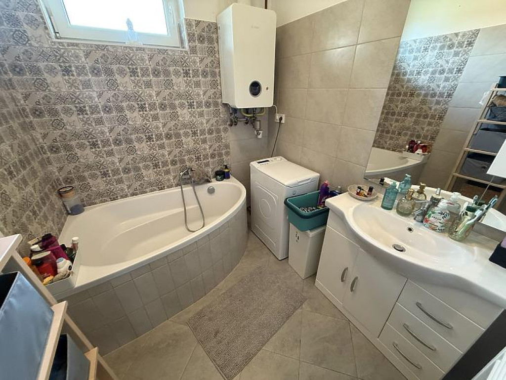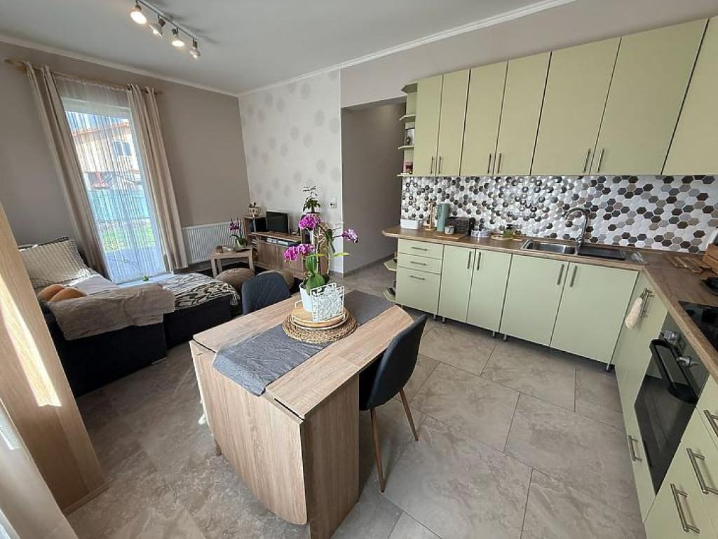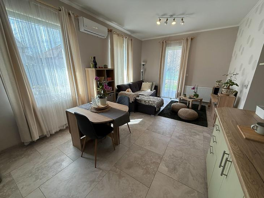 A fűtést és a meleg vizet kombi cirkó biztosítja, a nappaliban hűtő-fűtő klíma található.