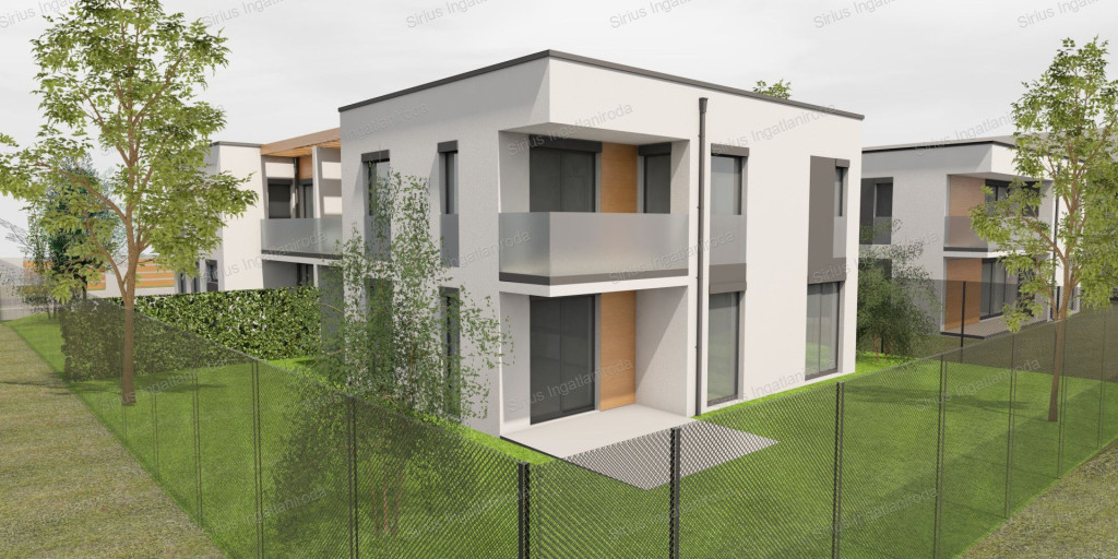 A lakóegységek egyenként 200 m² alapterületűek, mindkettőhöz kb. 400 m² saját telekrész tartozik.