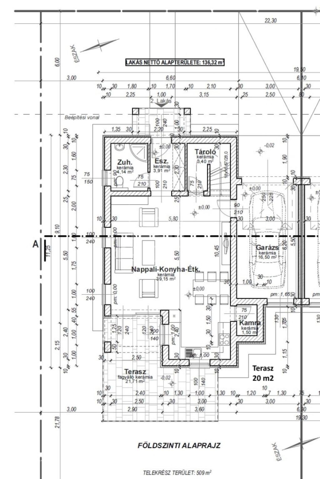 - 40 m² hátsó, burkolt terasz fedetlen és két fedett résszel is