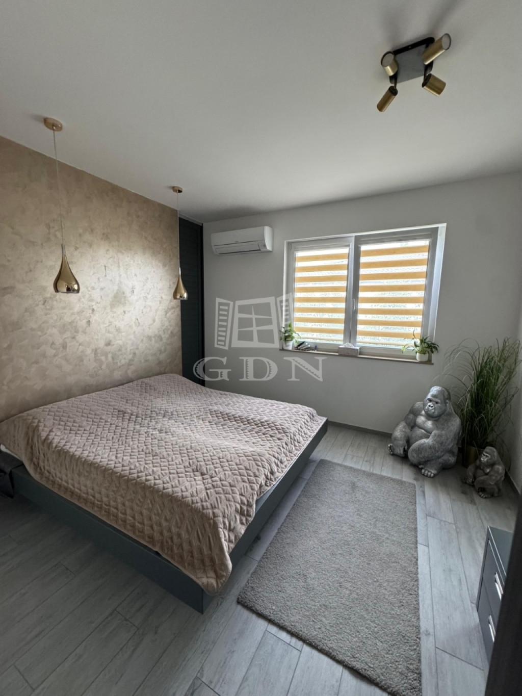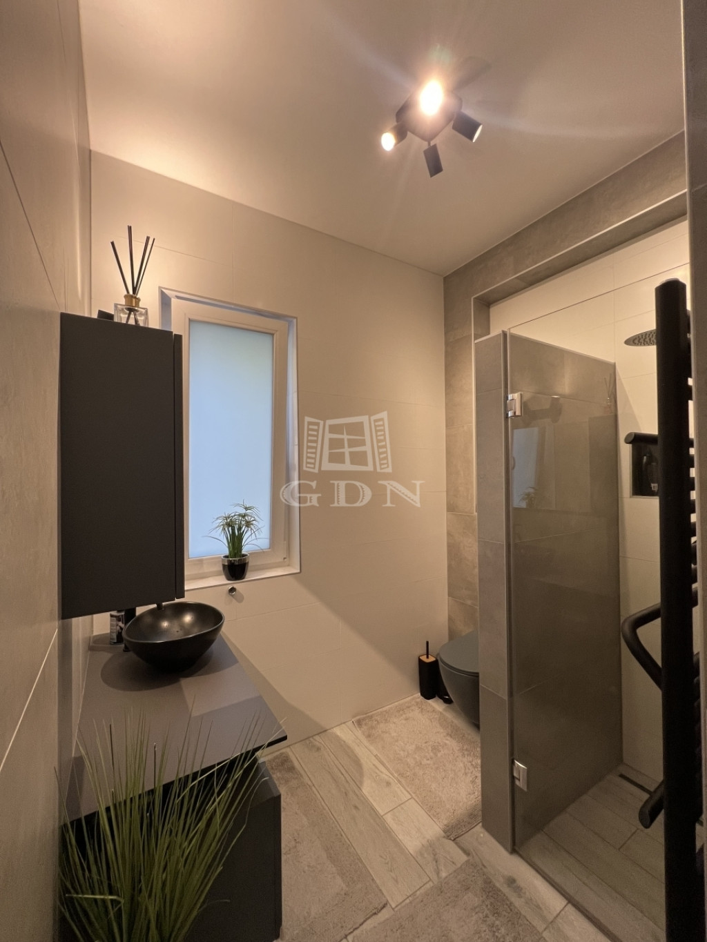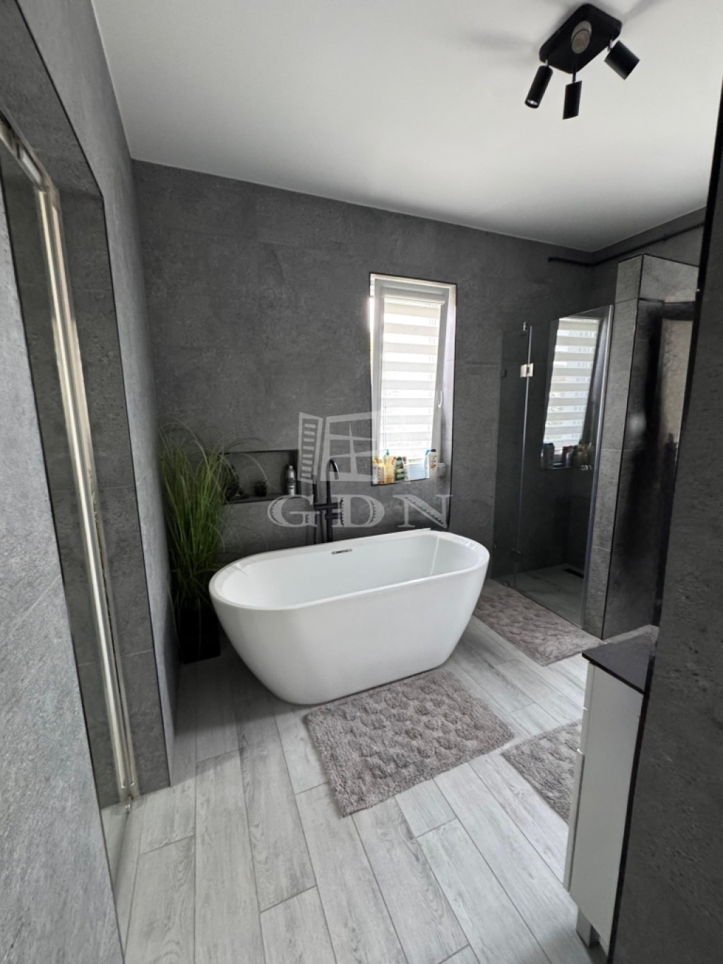 - Minden ablakon elektromos antracit alumínium redőny + szúnyogháló, a belső oldalon pedig zebra rolóval