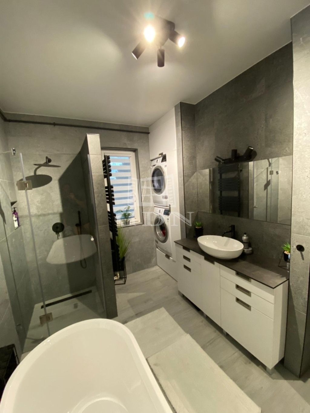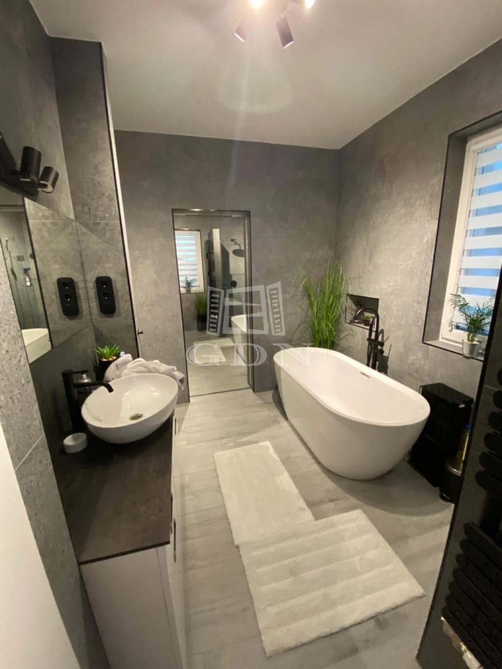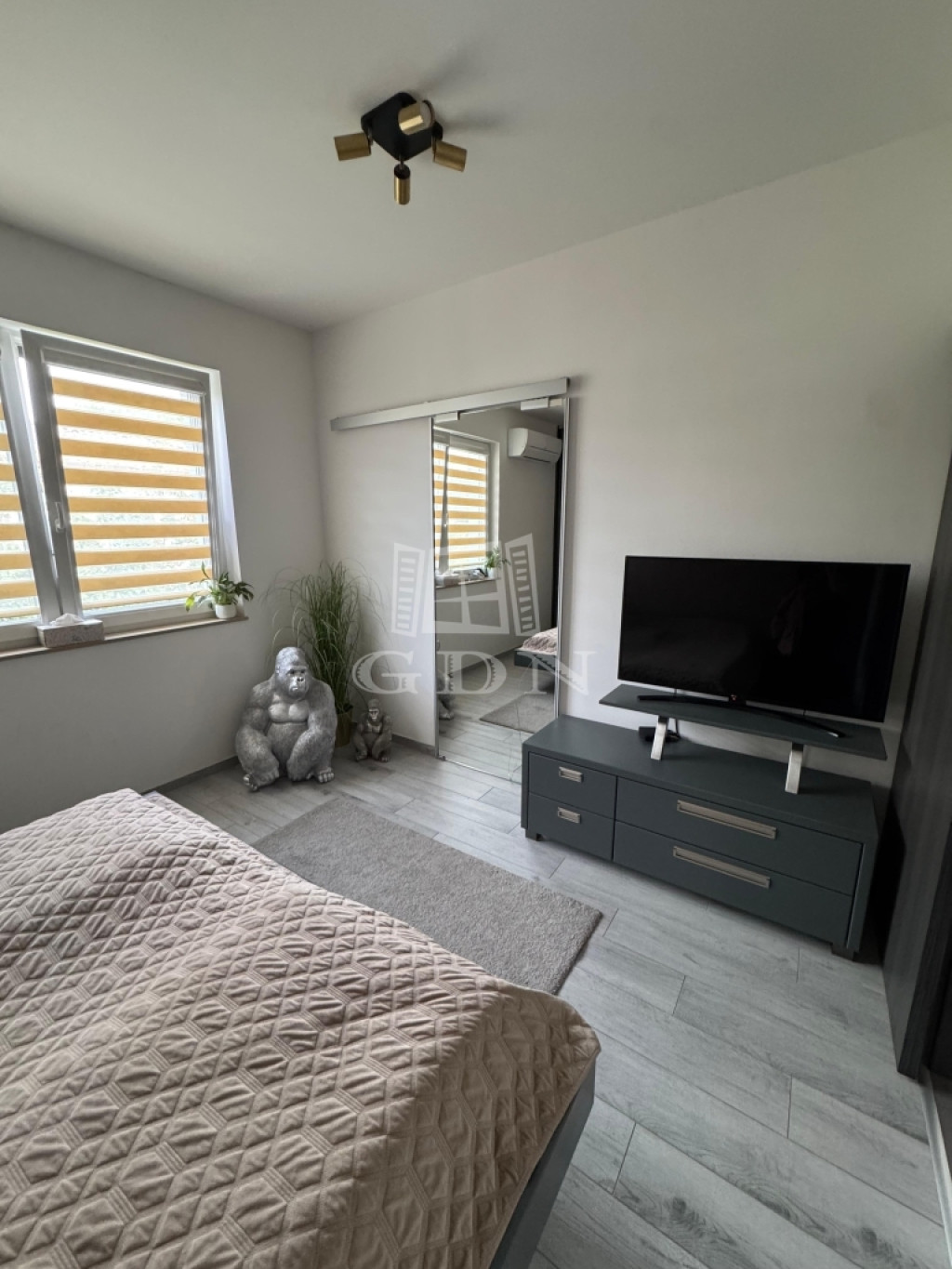 - Minden ablakon elektromos antracit alumínium redőny + szúnyogháló, a belső oldalon pedig zebra rolóval