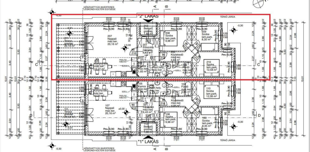 A telken 2 lakásos, földszintes ház épül, lakásonként azonos kialakítással. Az alaprajzon a 2-es lakással jelölt ingatlan elérhető még.