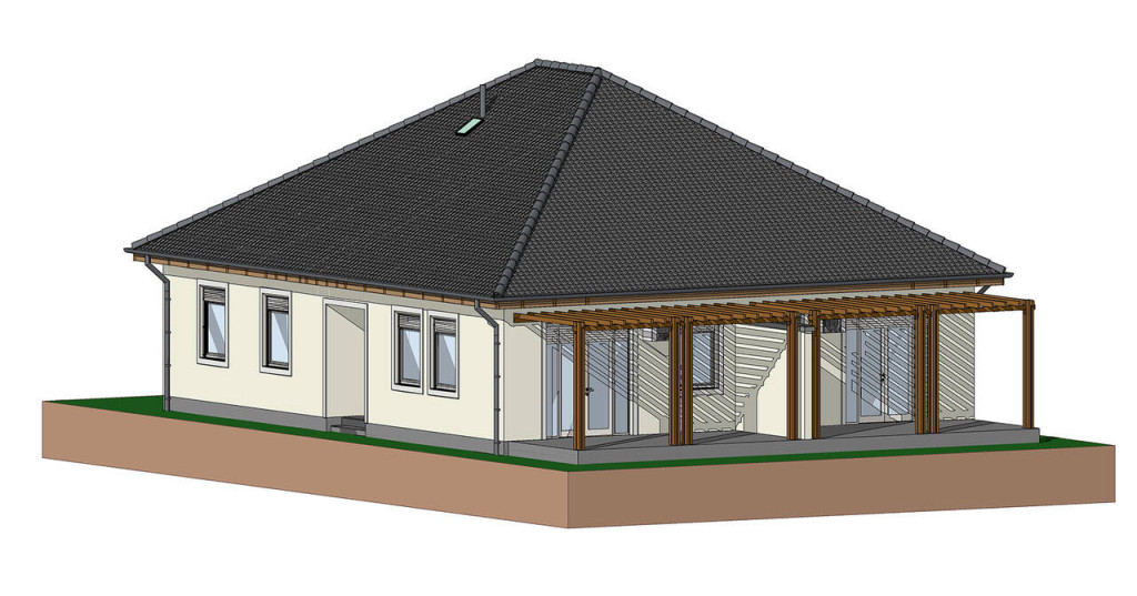Az ingatlan nettó 86 m² lakóterülettel rendelkezik, amelyhez egy közel 20 m²-es, délnyugati tájolású terasz kapcsolódik. A ház elrendezése praktikus és jól átgondolt: nappali, étkezőkonyha, három hálószoba, fürdőszoba, külön WC, kamra, háztartási helyiség, valamint előszoba és közlekedő kerül kialakításra. Saját autóbeálló hely is helyet kapott a telken belül