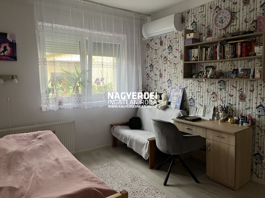 In Falóger, one of Debrecens popular, quiet districts, we are offering a 79 m² brick semi-detached house for sale, which comes with a beautifully maintained 622 m² garden. The property is built on a concrete foundation and has a solid structure with 10 cm thick brick walls with thermal insulation.