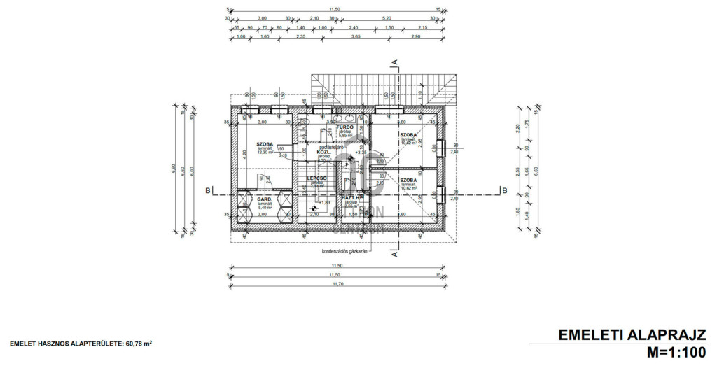 Emelet helyiségei : 3 szoba, fürdő, háztartási helyiség + az egyik szobához gardrob szoba.