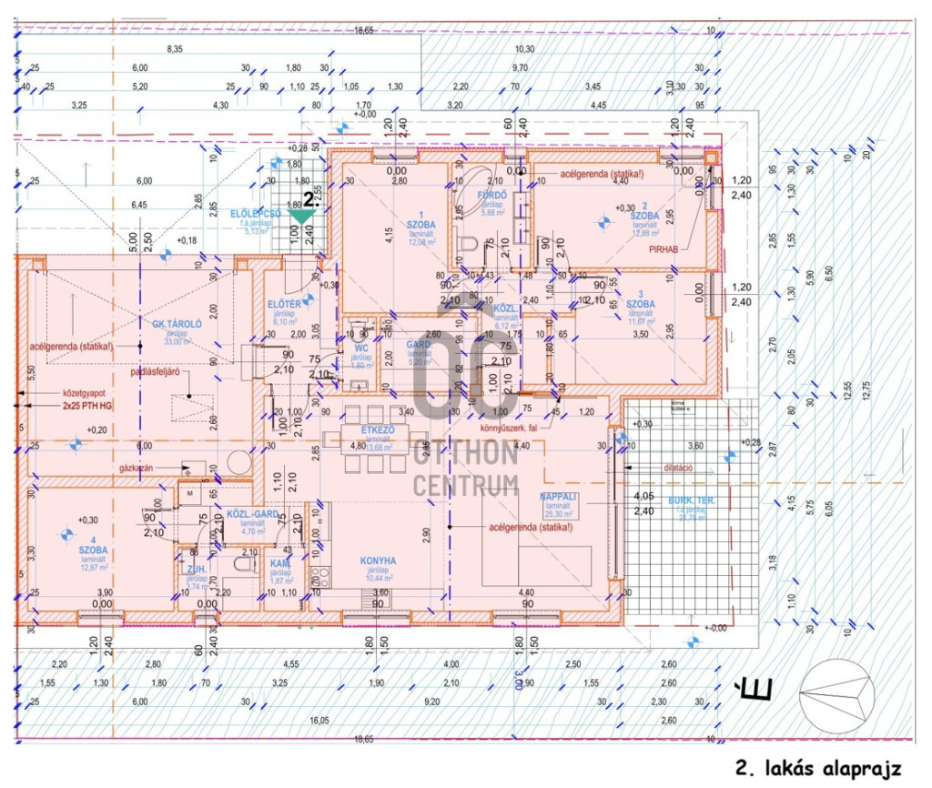 2. lakás 181 nm számított alapterülettel: (134nm + 27nm + 33 nm)- nappali / konyha / étkező / kamra (52 nm)