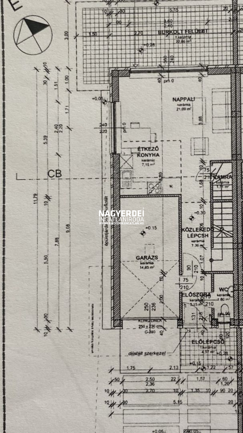 - Földszint: előszoba, wc-mosdóval, amerikaikonyha - nappali, spájz, 30 m2-es kertkapcsolatos terasz, amely pergolával és elektromos, belátás elleni rolettával felszerelt, valamint egy 16 m2-es garázs található,