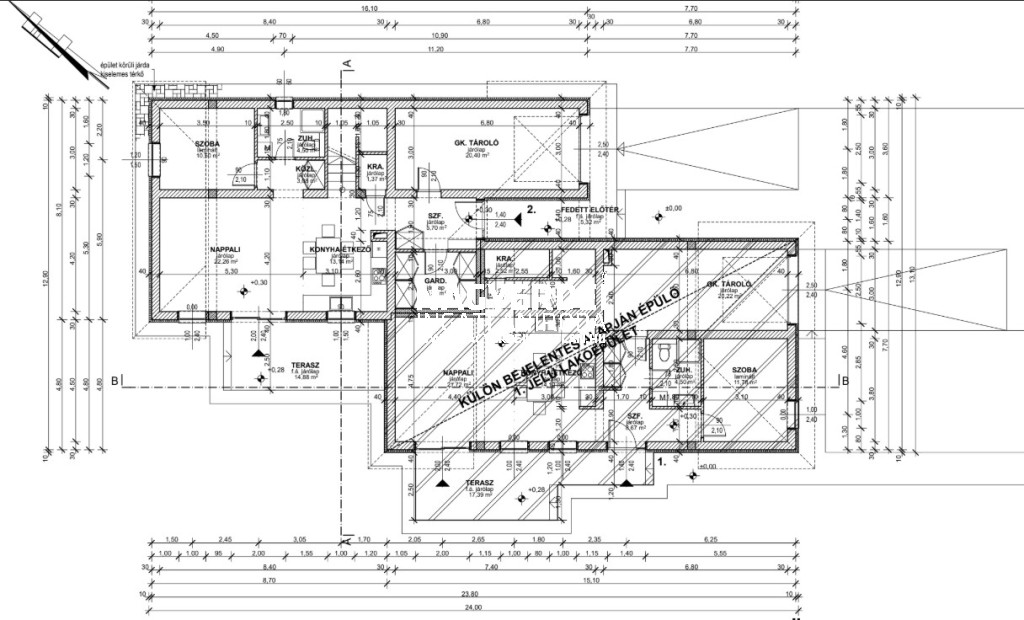 -nappali, 4 szoba, 2 fürdőszoba, garázs