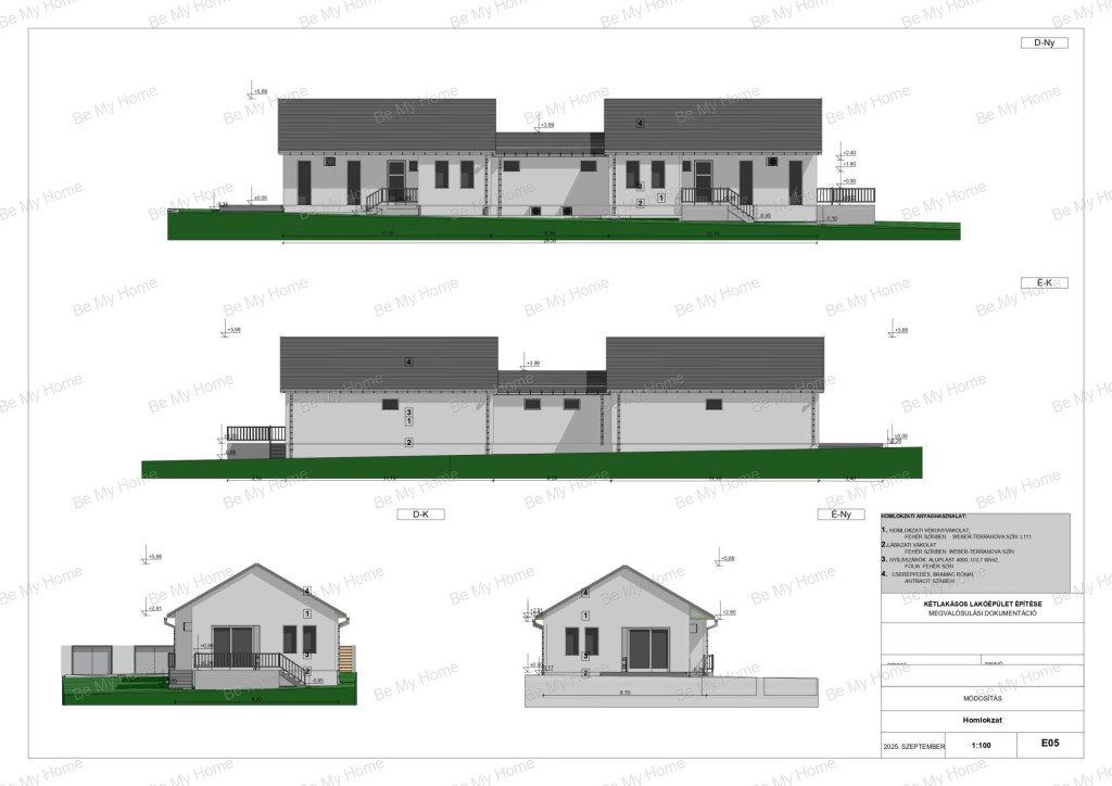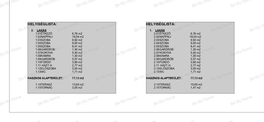 Mindkét ház brutto 85 nm-es, nappali + 3 hálószobás, netto 77 nm-es (+ a terasz és tornác fele).