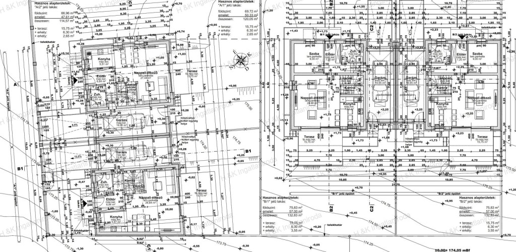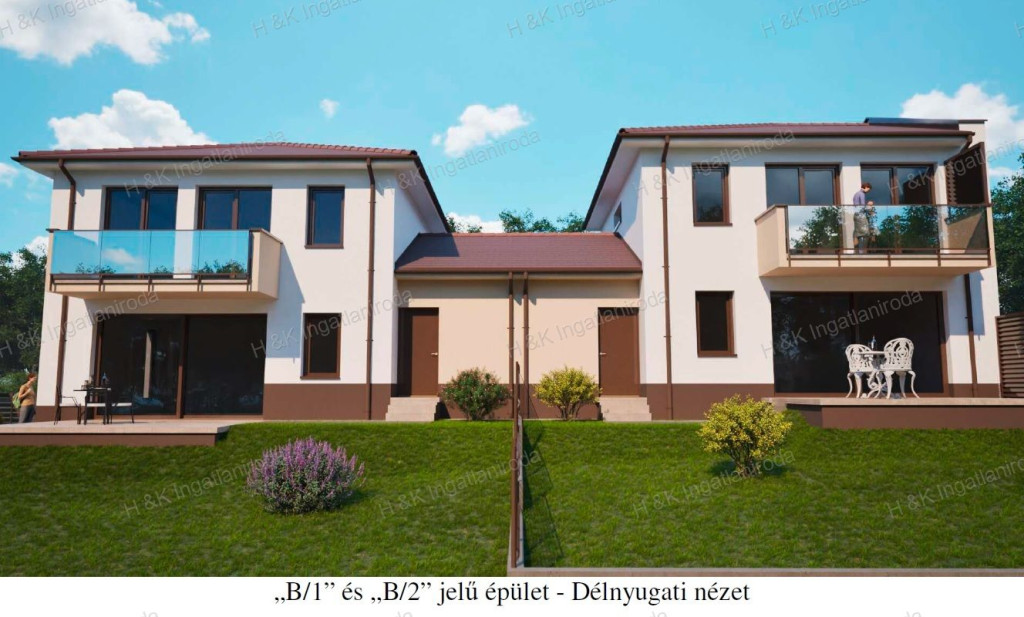 Jelen hirdetésben az B épület 1-es és 2-es lakása szerepel, mely hasznos lakóterülete a garázzsal 132,83 nm + terasz + erkélyek, amerikai-konyhás nappali + 4 szobás, dupla-komfortos, kb. 400 nm-es telekrésszel.