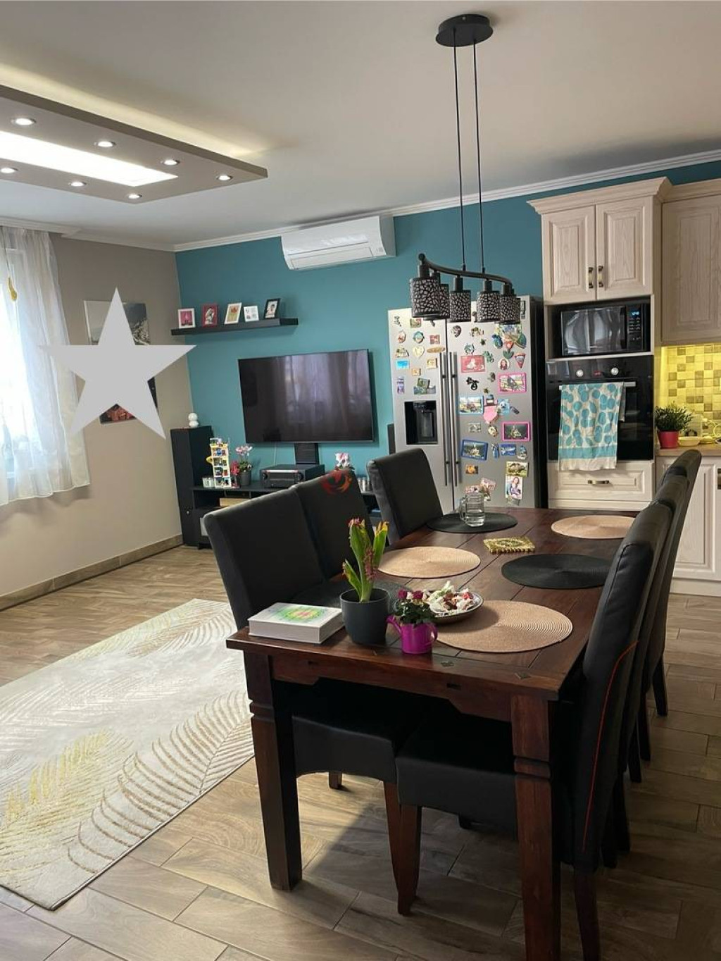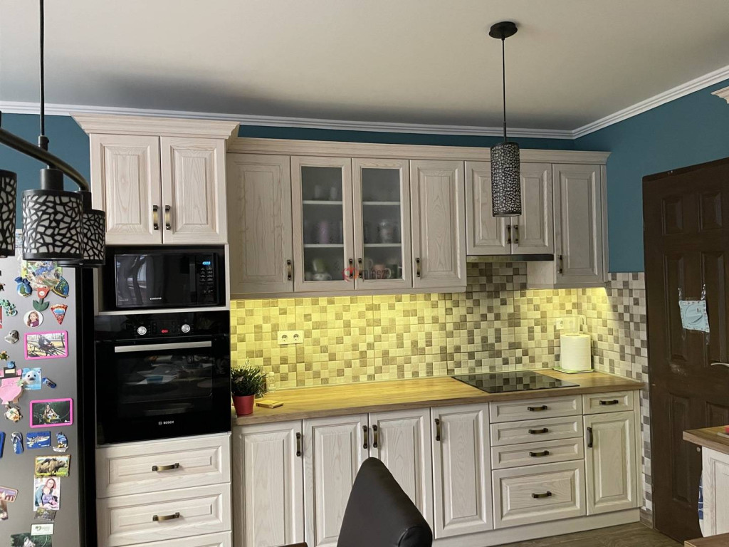 A gépesített kőrisfa konyhabútor a vételár részét képezi.