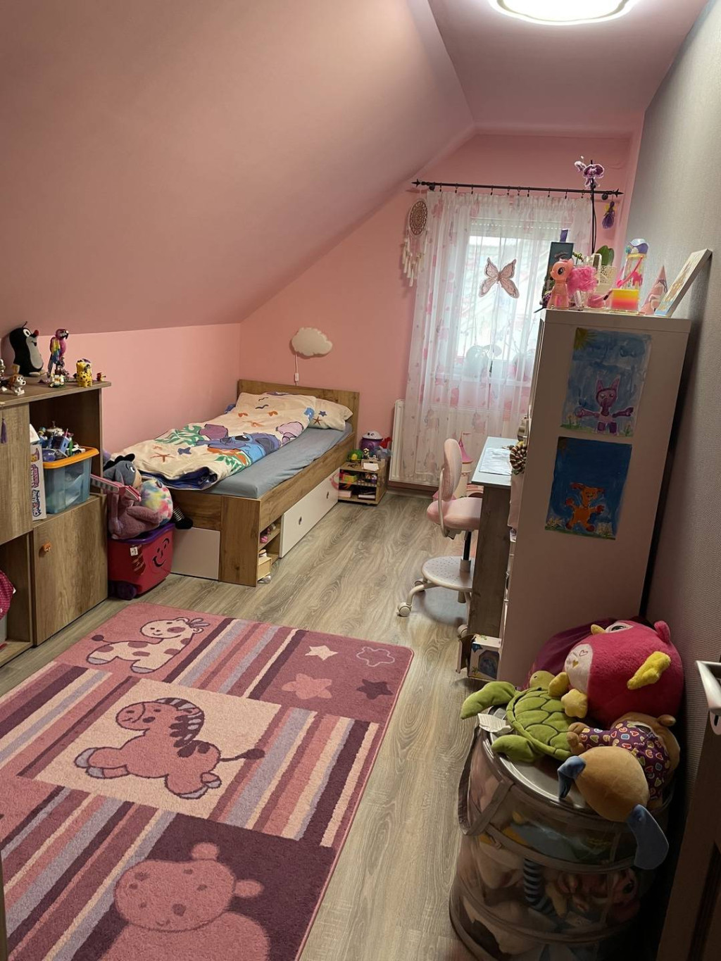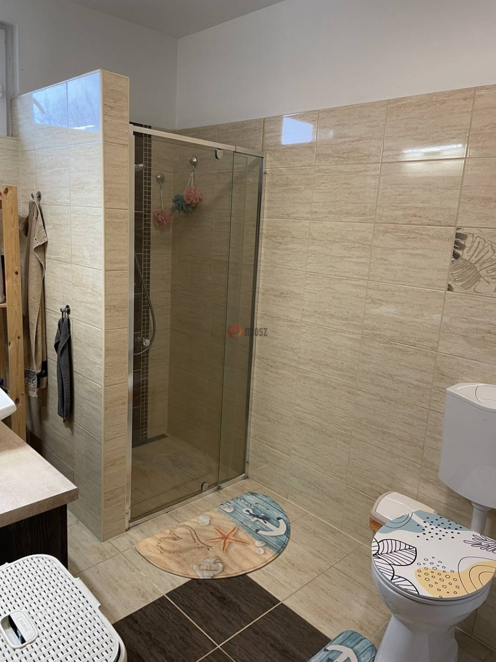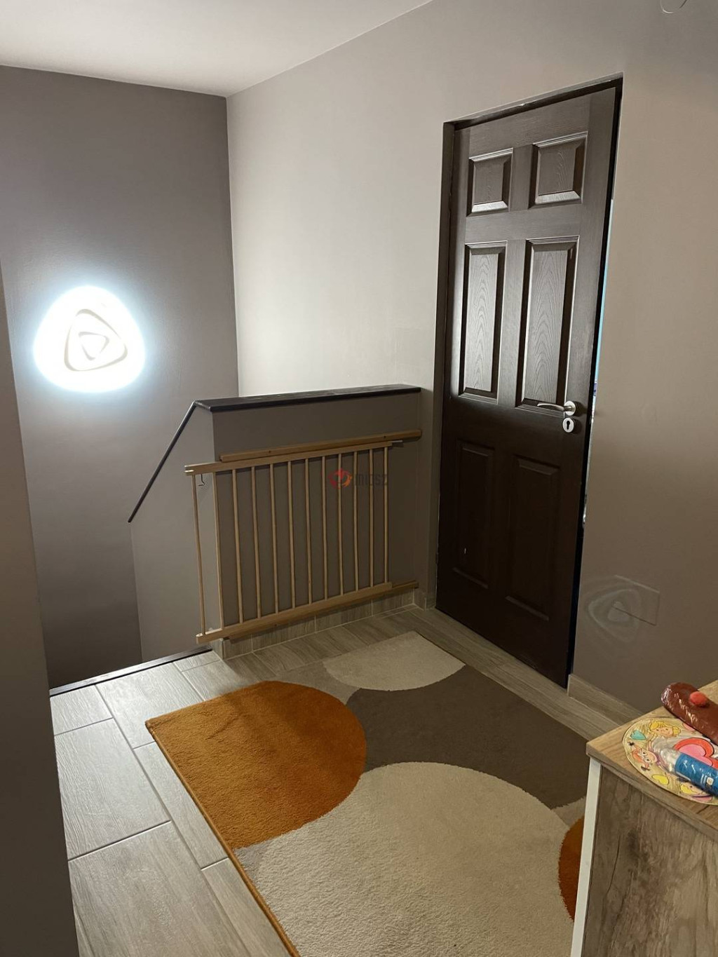 A felső szinten előtér, három világos hálószoba, tágas fürdőszoba káddal és egy külön toalett található.