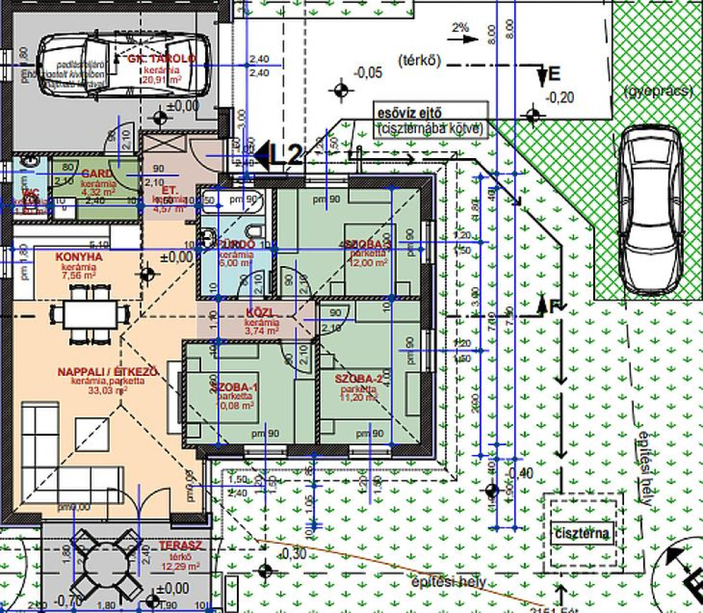 Parkolás szempontjából is ideális: a garázsban 1 autó, valamint az előtte kialakított felszíni beállón további 1 gépkocsi számára biztosított a parkolás.