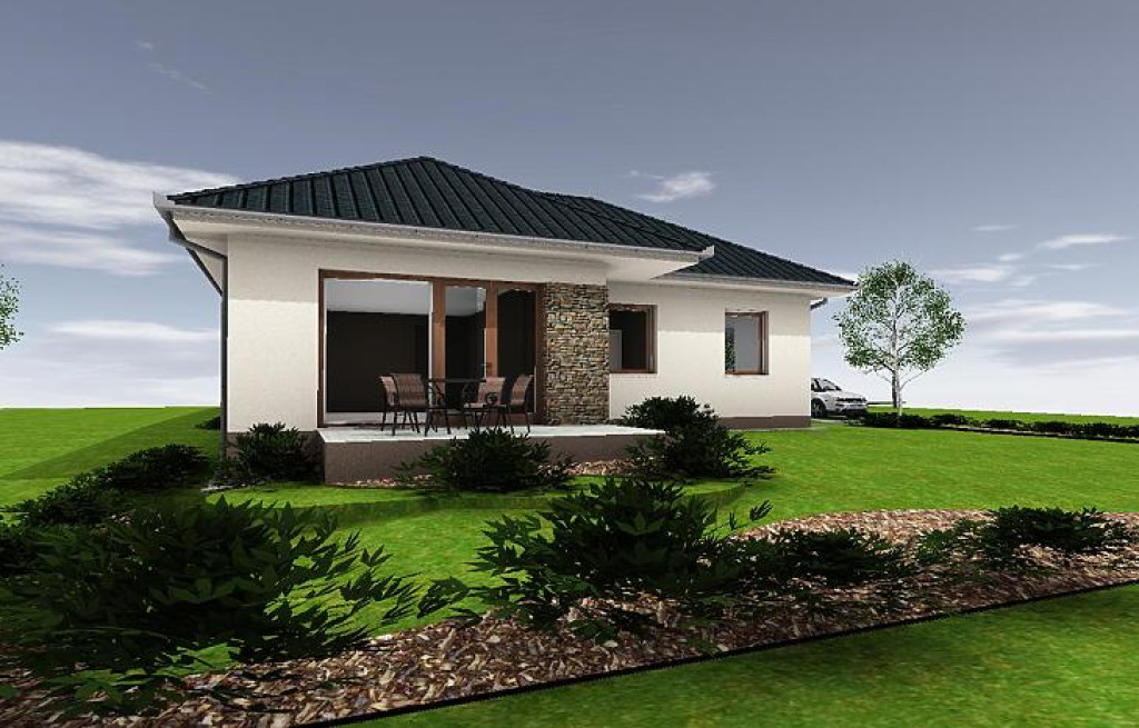 A világos nappaliból közvetlen kijárat nyílik a 13,68 nm-es teraszra, amely harmonikusan egészíti ki a ház belső tereit, ideális helyszínt biztosítva pihenéshez vagy családi programokhoz.