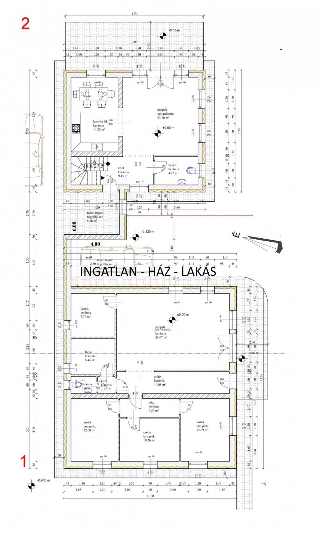 A ház korszerű anyagokból, magas műszaki tartalommal készült. Tágas, napfényes belső terei ideálisak családoknak, de akár pároknak is, akik kényelmes, egy szintes otthont keresnek.