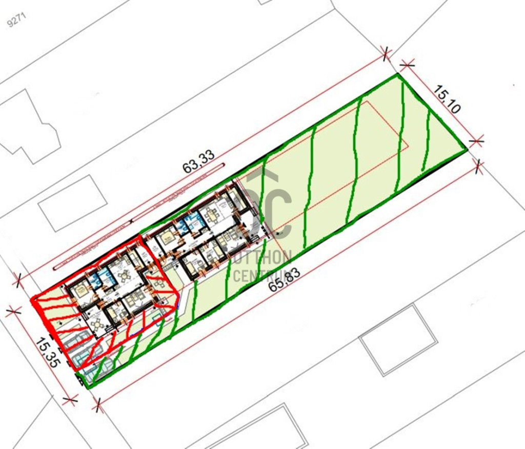 - az ikerházak egymás mögé épülnek, kazánházzal, gépészeti helyiséggel elválasztva a 2 épületet