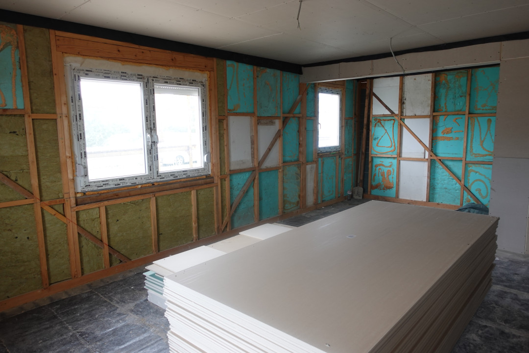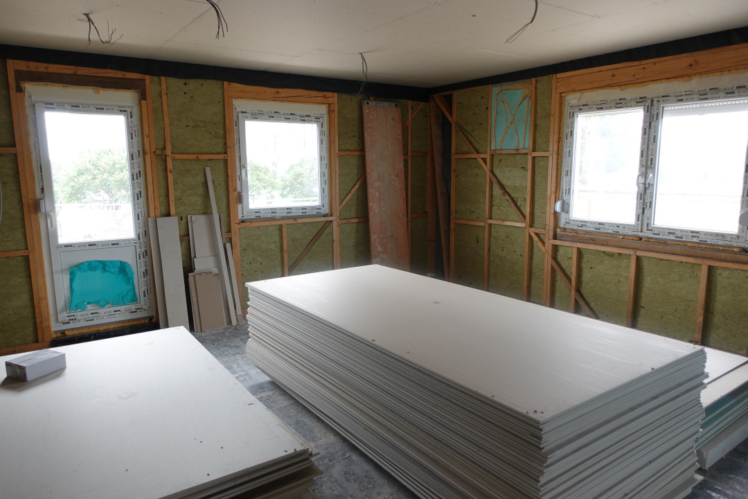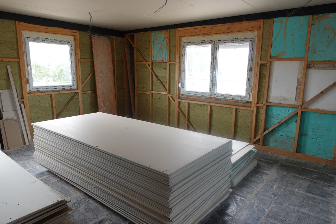- gipszkartonozás 50%-ban kész anyagok a helyszínen