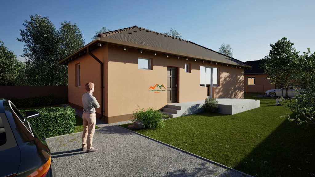 Az ingatlan jogilag ikerház, de egy telken két különálló épület készül, így a házak nem érnek össze – gyakorlatilag önálló családi ház érzetét nyújtja.