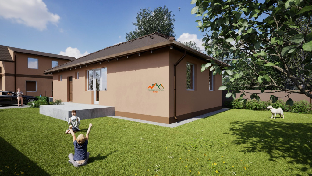 Az ingatlan jogilag ikerház, de egy telken két különálló épület készül, így a házak nem érnek össze – gyakorlatilag önálló családi ház érzetét nyújtja.