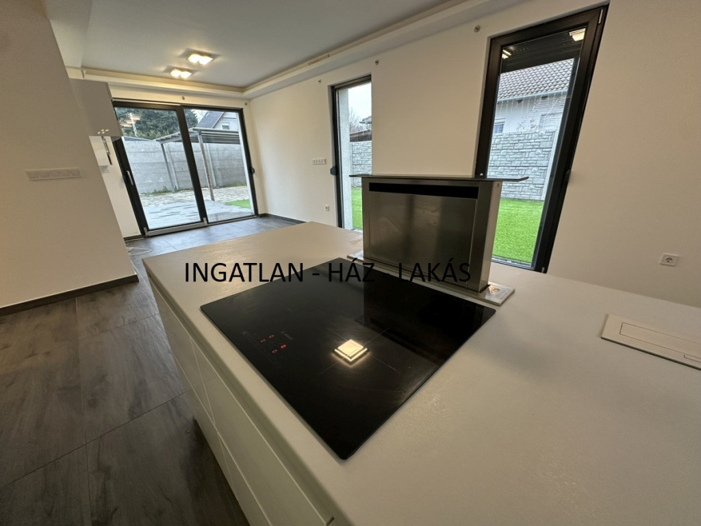 Hivatkozási szám: IHL-G-902Eladó ikerház első lakóegysége Nagytarcsa–Öreghegyen – nappali 4 hálószoba, nagy kert, modern extrák