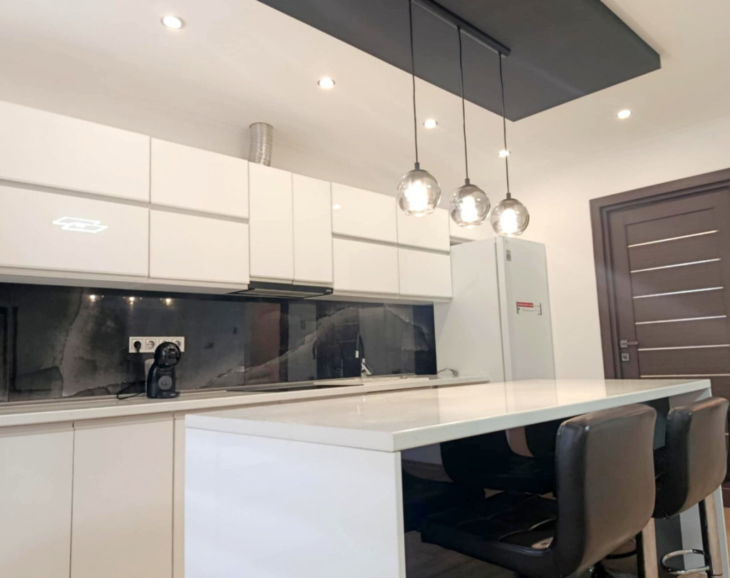 - egyedi, magas fényű konyhabútor,konyhasziget
