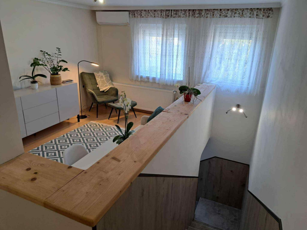 - Felső szint: nappali, 2 szoba, gardrób szoba, zuhanyzó kialakítással fürdő + WC.