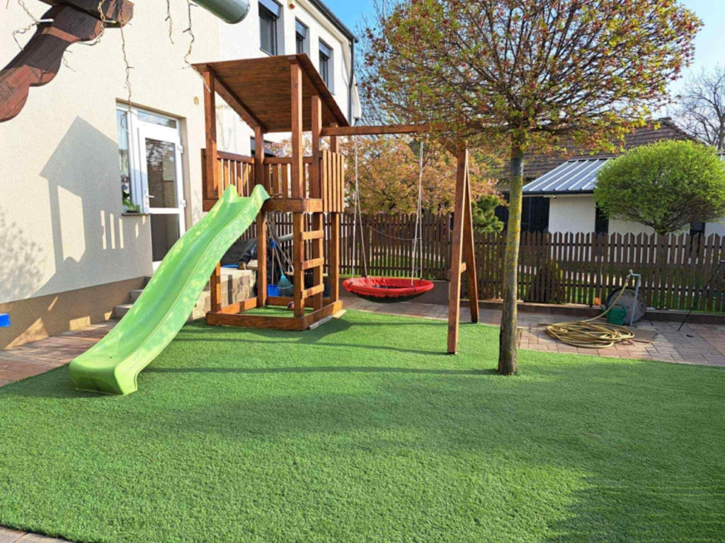 A telken egy autóbeálló és egy kisebb játszótér is kialakításra került.