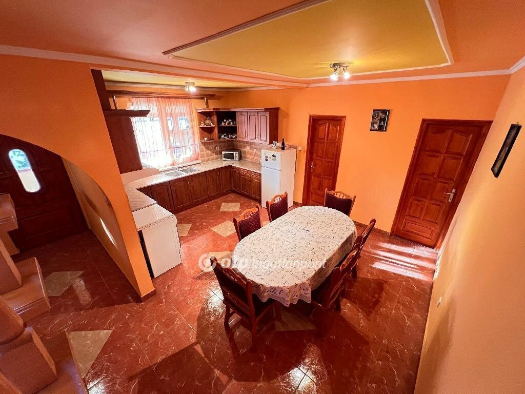 Kényelmes, világos konyha és egybekötött étkező.