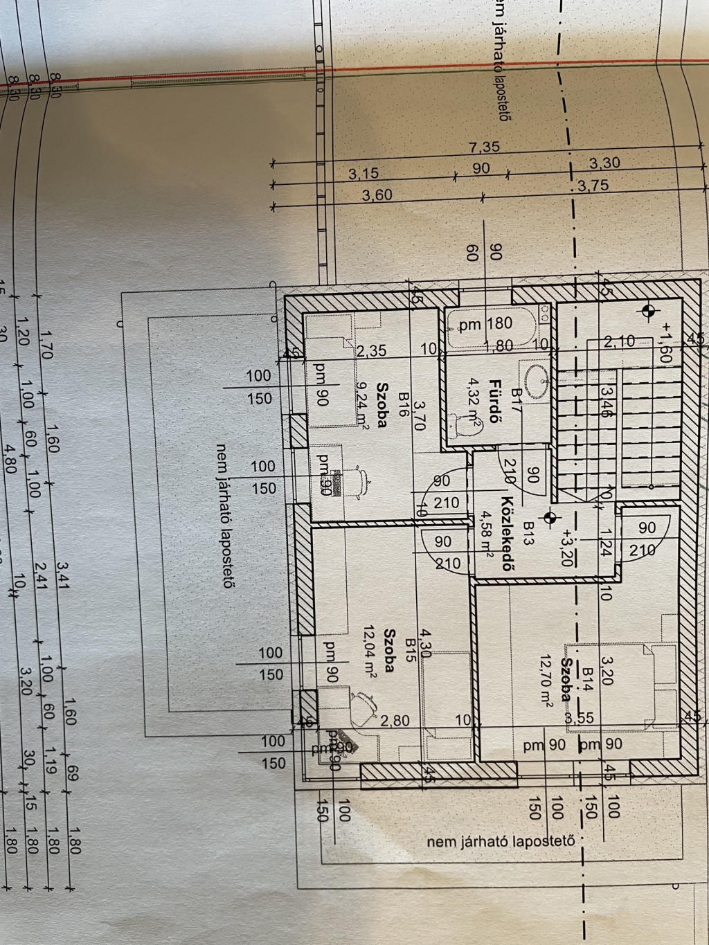 Emeleten: 3 külön nyíló szoba, fürdőszoba, közlekedő található.