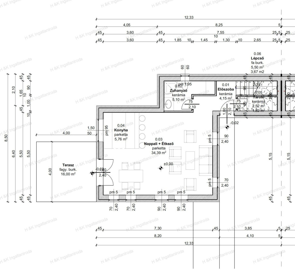 A szobákba laminált parketta, a vizes helyiségekben kerámia burkolat kerül, a belső műszaki tartalomban vállalt árakig.