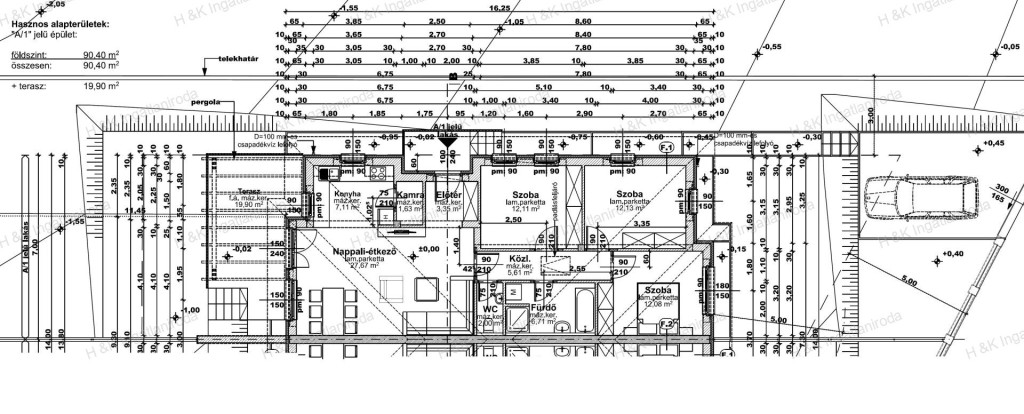 Parkolás: burkolt, udvari beállón kerül kialakításra.