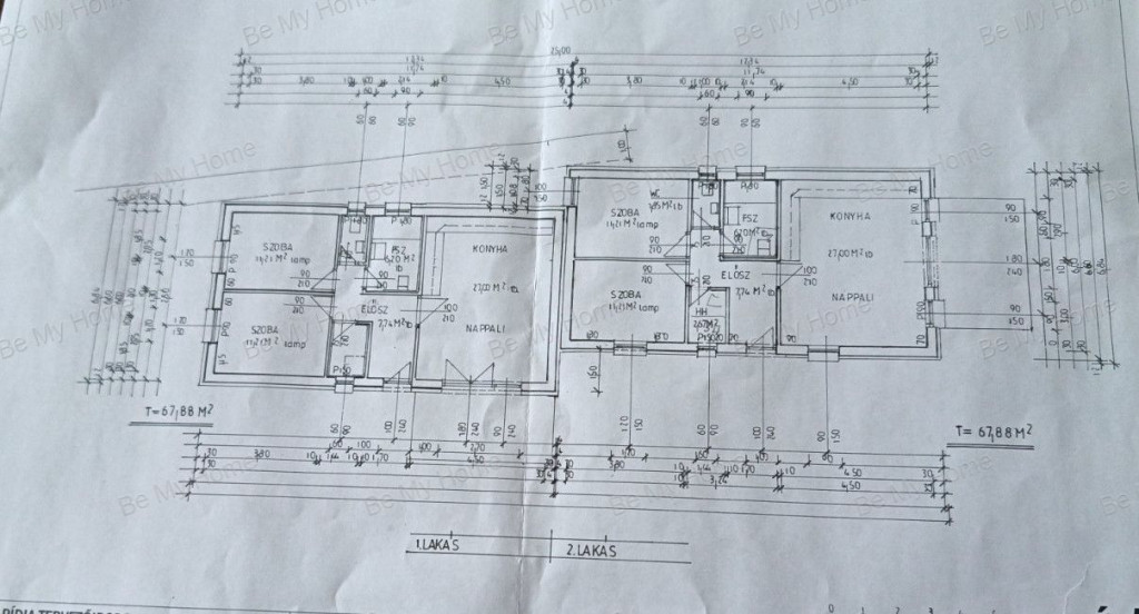 - 2 db telek lesz egymás mögött, az alaprajzon az 1. lakás az utcafront felé helyezkedik el, a 2-es lakás pedig mögötte
