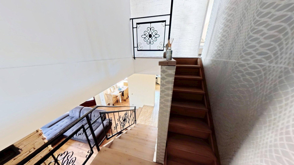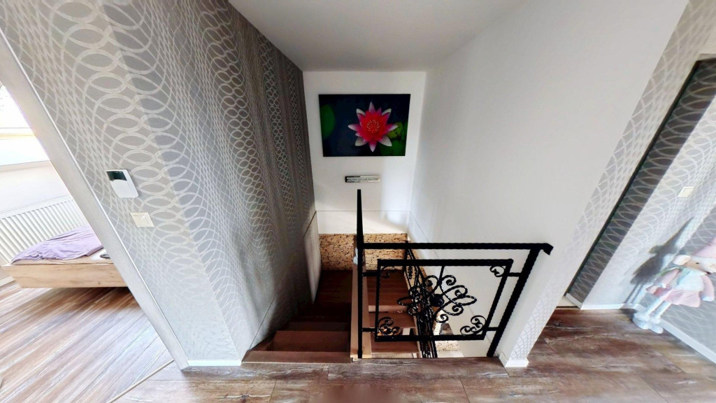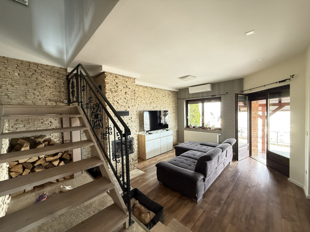 Felső szint: 3 háló, panoráma erkély, gardróbszoba, fürdő, közlekedő.