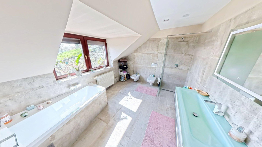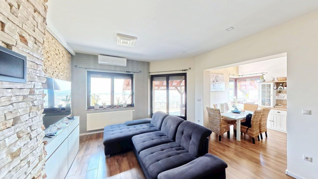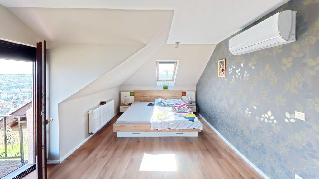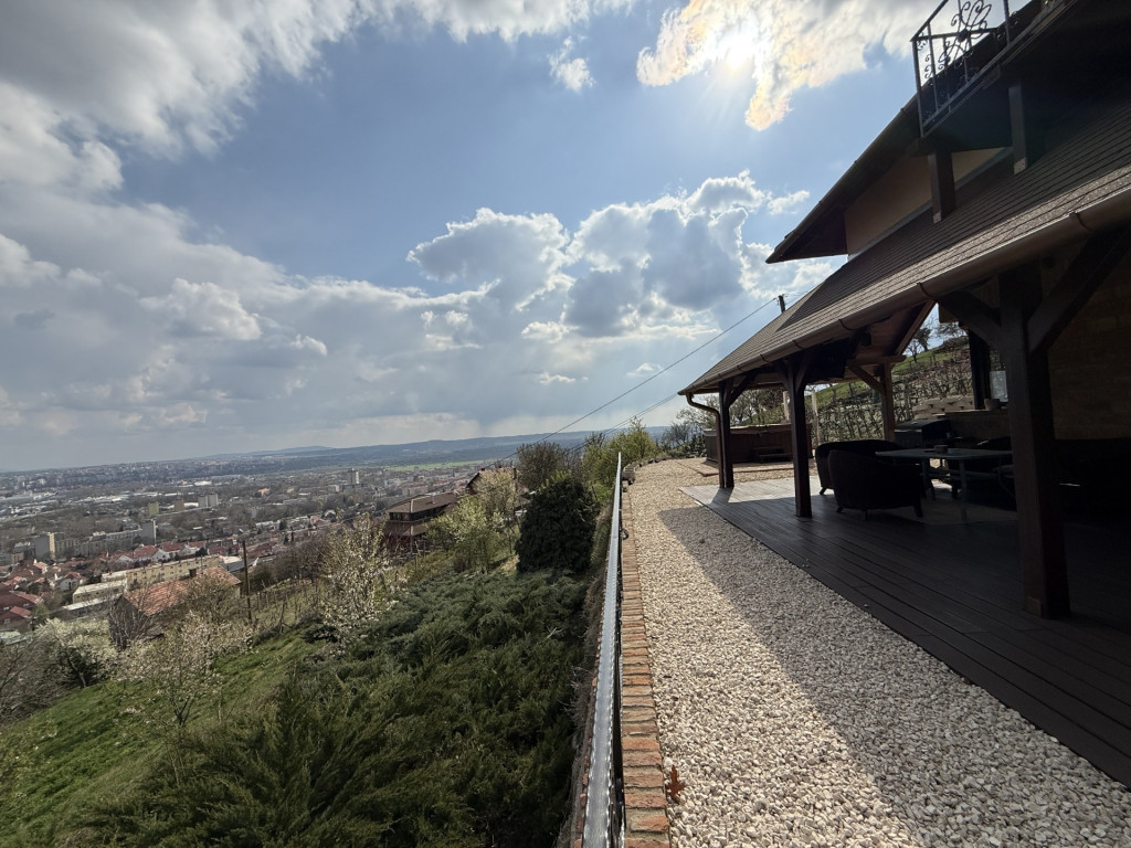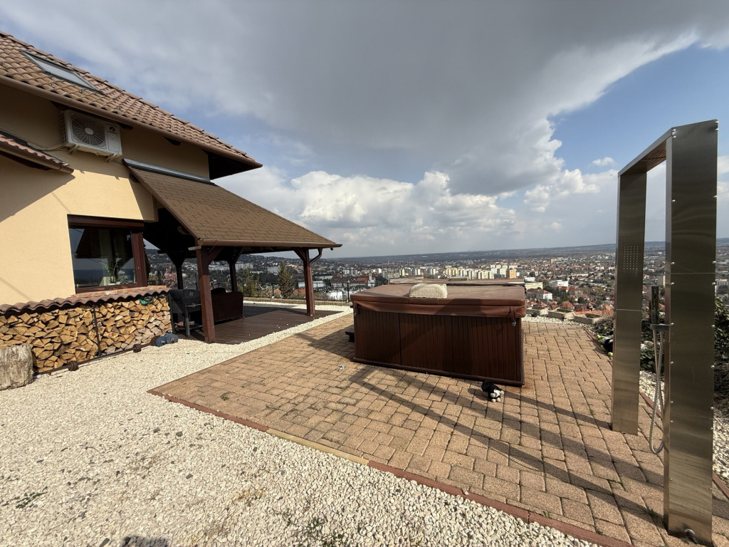 Az exkluzív ház 54 m2-es fantasztikus örökpanorámás fedett teraszáról pazar kilátás az egész városra. A hálószobából is a festői panorámában gyönyörködhetünk.