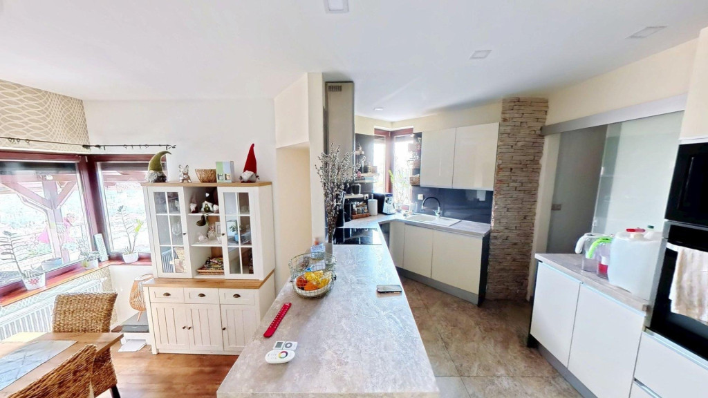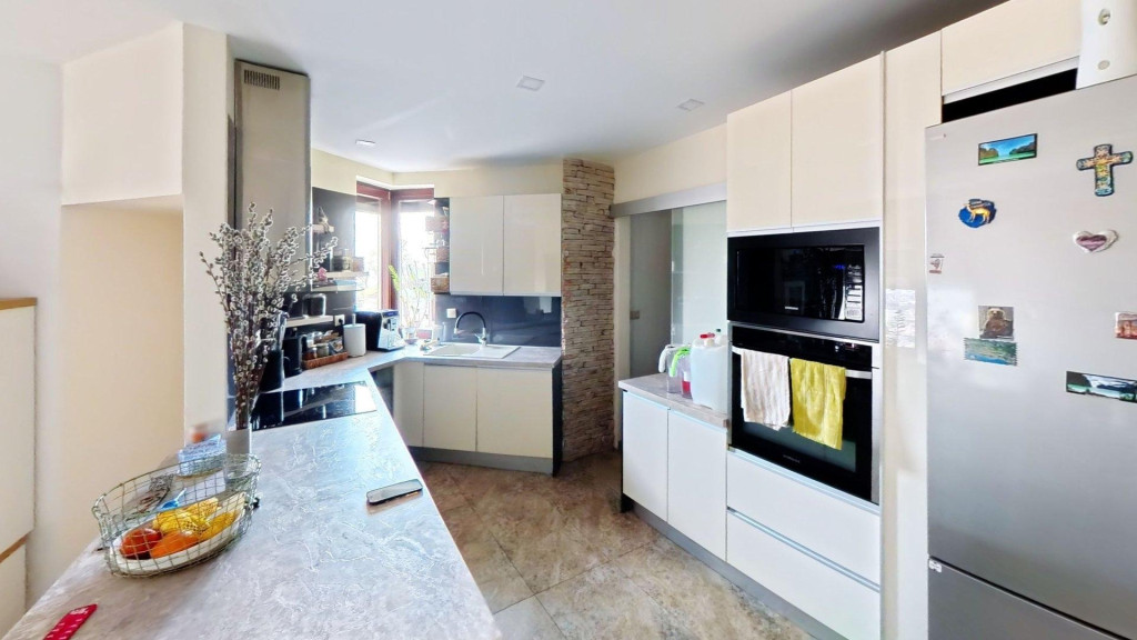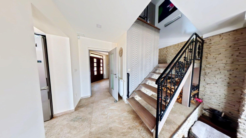 Extrák: jakuzzi, riasztó, kamerarendszer, 54 m2 örök panorámaterasz, klíma, elektromos kapu, okosmosógép, -szárítógép, wifi-ről is indítható, külső tokos alumínium elektromos redőny, 43 nm-es elektromos Hörmann kapus garázs, két férőhelyes, melyben hideg-, meleg víz, magas minőségű, vastag alapanyagú, egyedi gyártású kovácsoltvas teraszkerítés, mely a ház belső részében is visszaköszön, mint lépcsőkorlát.