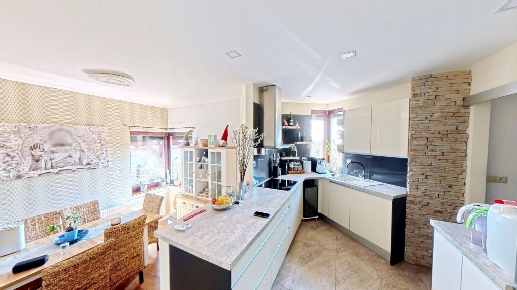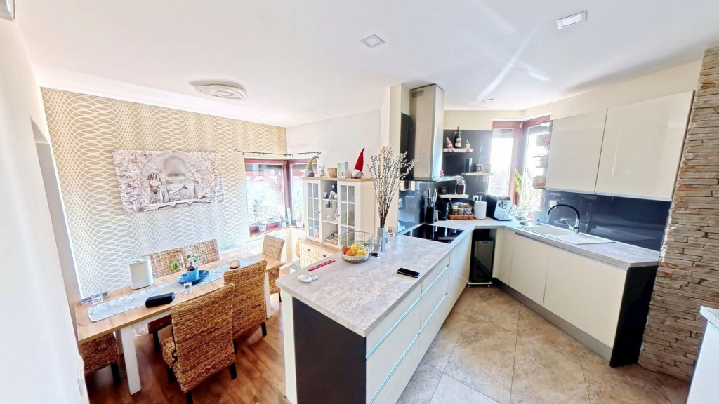 Alapterülete 180 m2-es lakótér, 1035 m2 telekkel, 4 szobás, jakuzzival, szaunával, saját önálló kétbeállásos garázzsal.