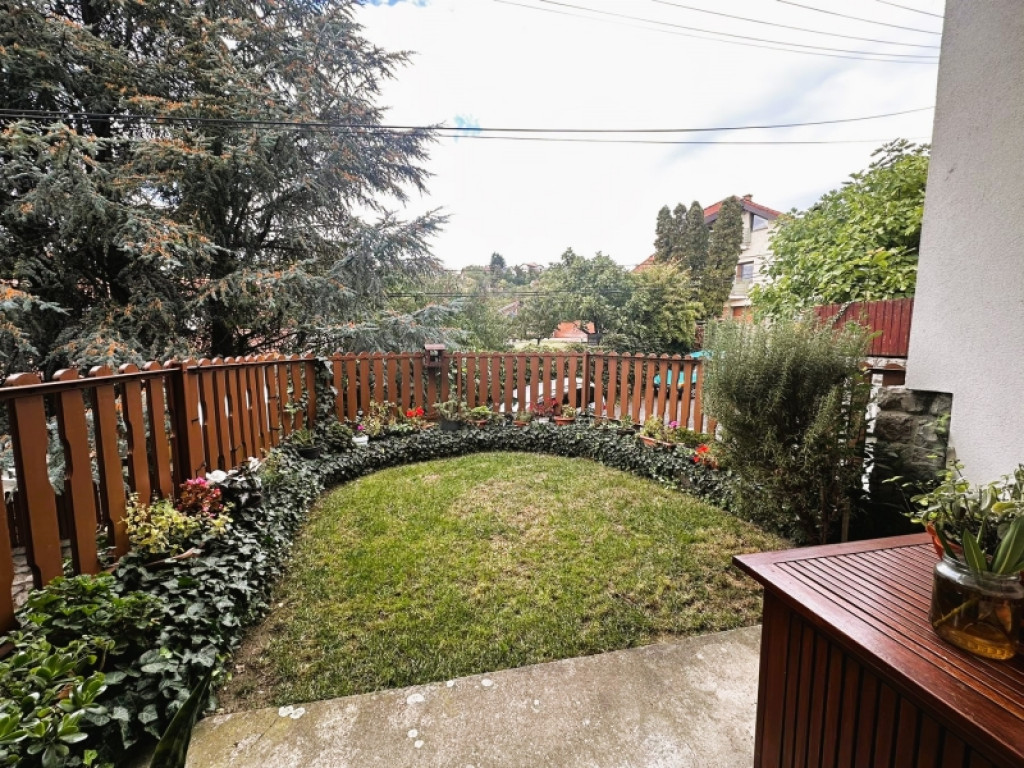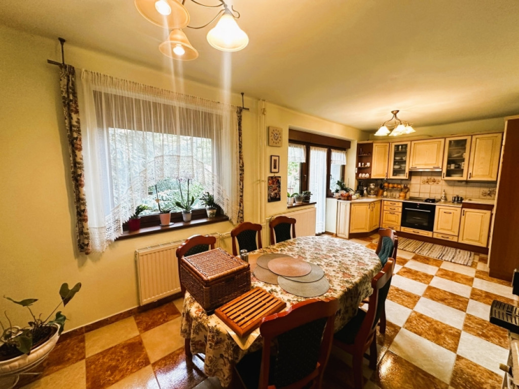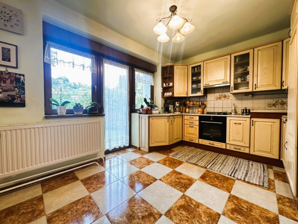 A konyha gépesített, beépített bútorai igényesek és kifogástalan állapotúak, a fedett terasz és kis, virágos kert pedig igazi oázis a mindennapokban.