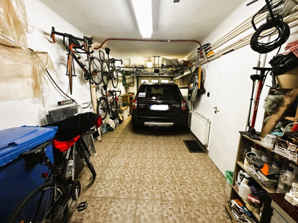 Az alsó szinten egy dupla, aknás garázs helyezkedik el elektromos kapuval, valamint kamra és fűtőhelyiség is található itt ? minden praktikus megoldás adott egy kényelmes családi élethez.