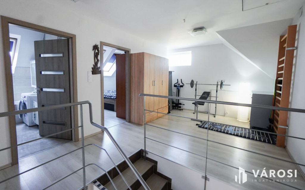 A házhoz tartozik egy kényelmes terasz, ahol élvezheti a csendes utca nyugalmát és a saját kertrész adta lehetőségeket. A biztonságos parkolást az elektromos garázskapu teszi egyszerűvé, és az erkélyről elénk táruló kilátás további élményt nyújt. Az udvaron több járműnek is kényelmesen van hely.