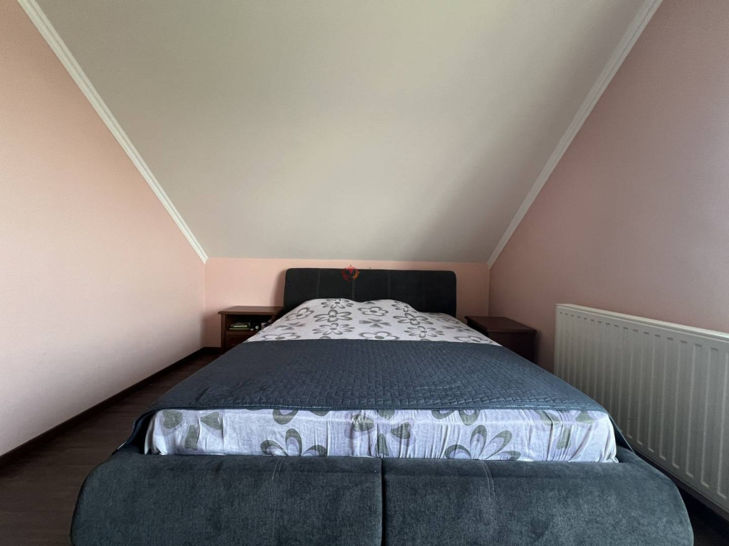 Az emeleten három külön nyíló, kényelmes méretű szoba található, amelyek jól berendezhetők akár gyerekszobának, hálónak vagy dolgozószobának is. A helyiségek kellemesen világosak, a nyári melegben pedig a klíma gondoskodik a komfortos hőmérsékletről. Ezen a szinten egy tágasabb fürdőszoba is kialakításra került káddal, zuhanyzóval és WC-vel, ami nagy segítség a reggeli készülődésnél.