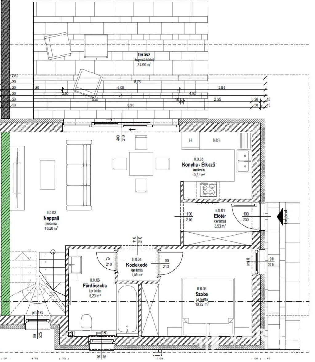- Energiahatékony megoldások – 15 cm-es grafitos hőszigetelés, hőszivattyús padlófűtés gondoskodik az otthon melegéről