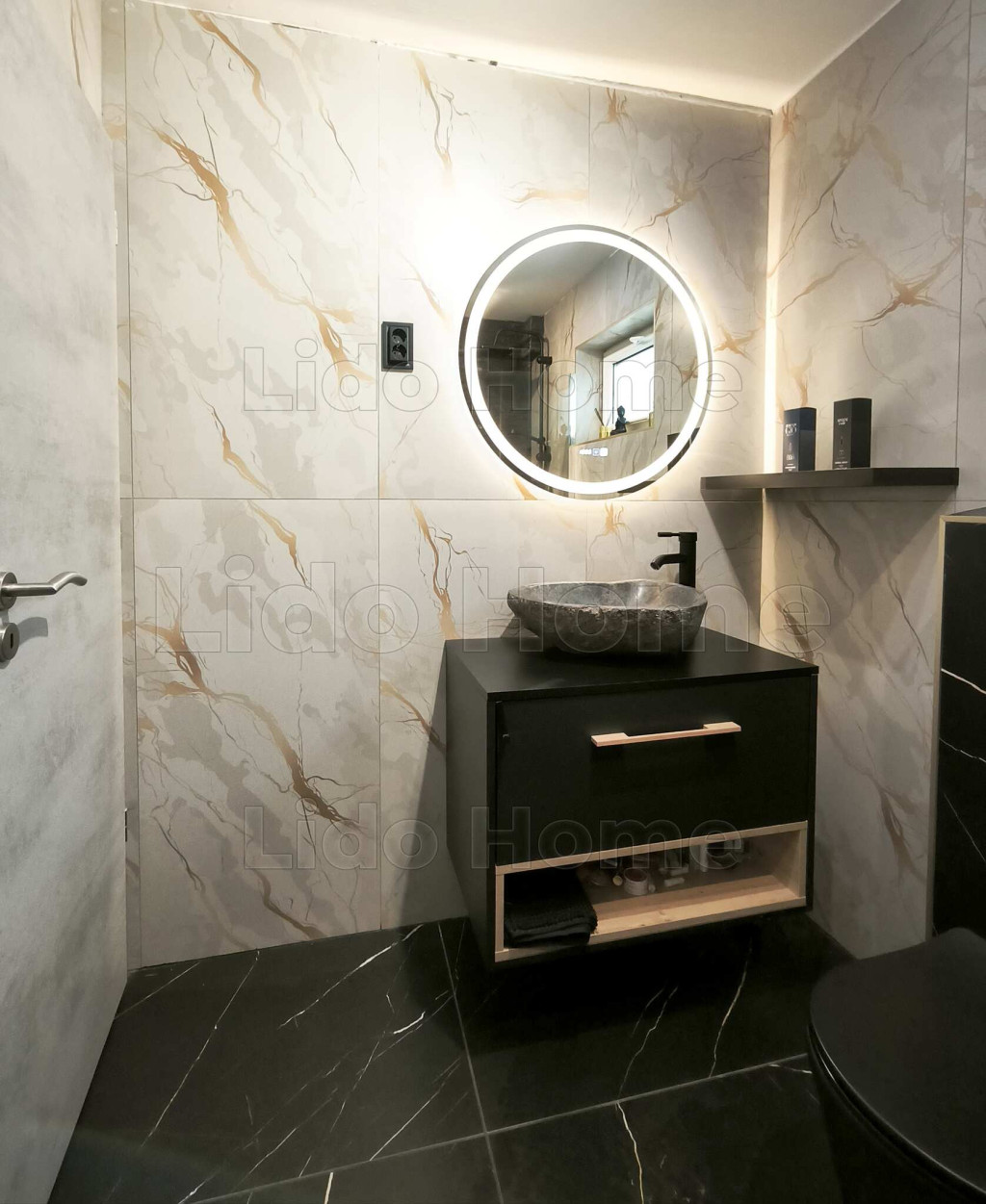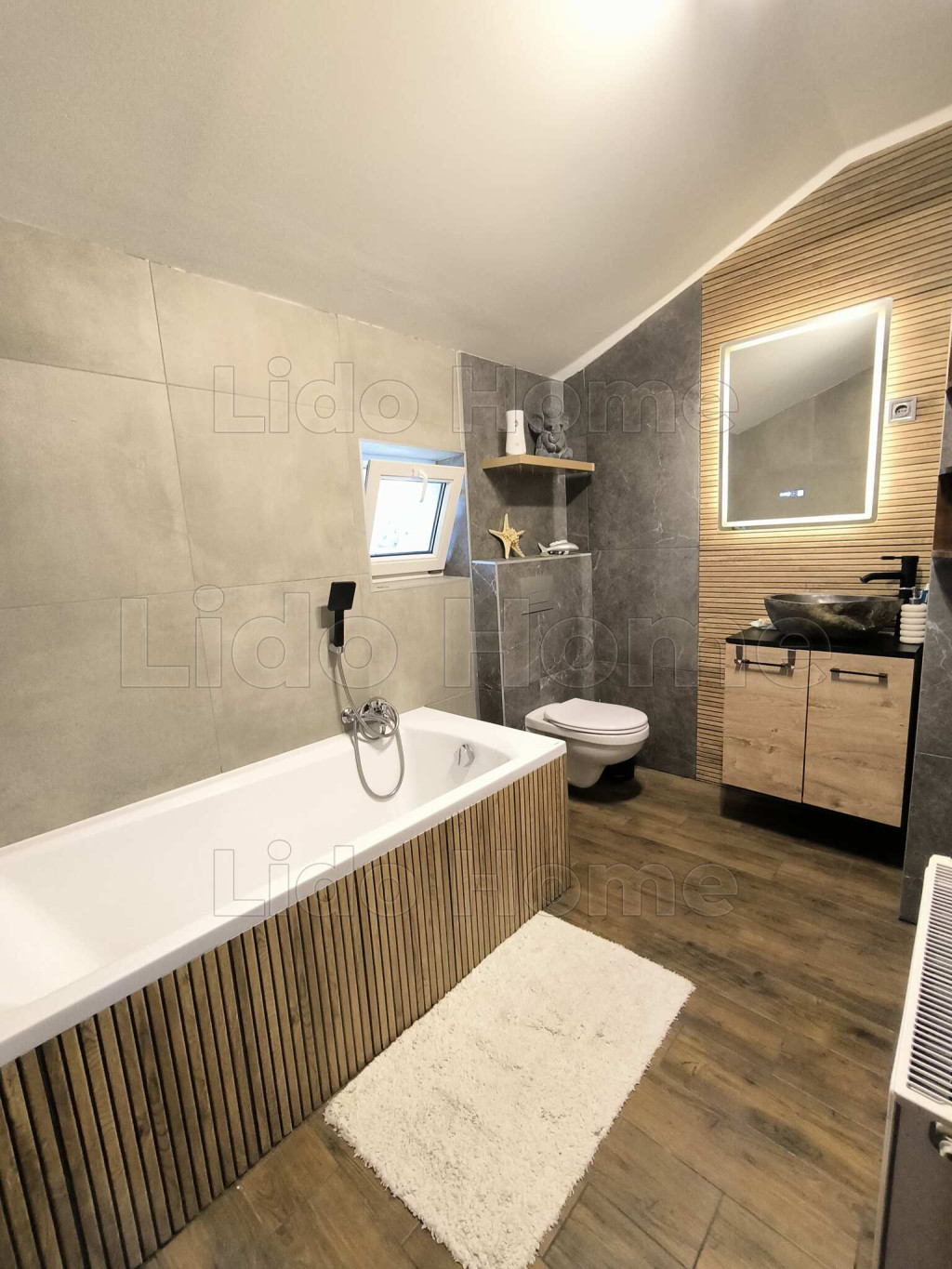 -Modern minimal stílusban igényes burkolat használattal kialakítva, lakberendezve