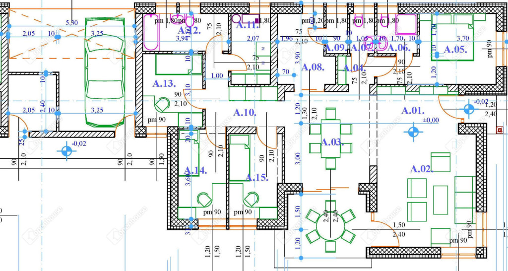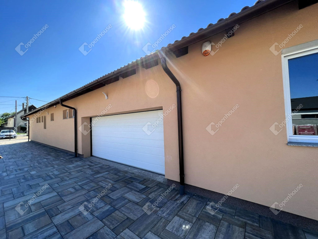 A épület: 109,6 m2 nettó lakótér + 15,5 m2-es terasz + 21,5 m2-es garázs,